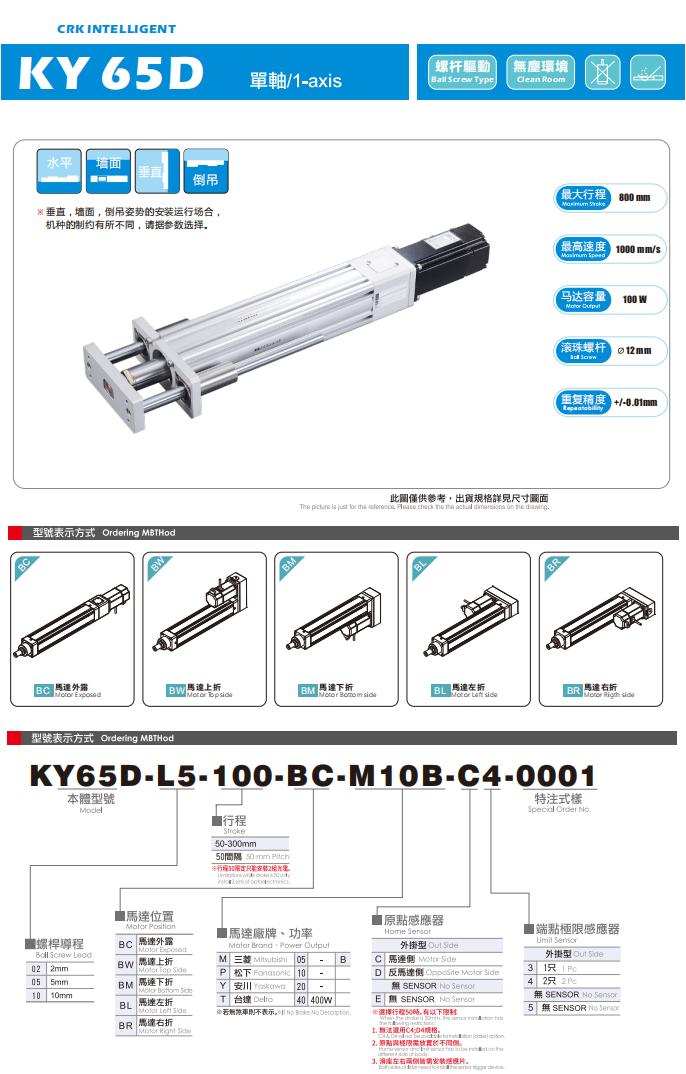 KY 推桿式螺桿滑臺 65D 是一款高性能的自動化設備組件,旨在為各種工業應用提供精確、穩定且高效的直線運動解決方案。它采用先進的設計和制造工藝,結合優質的材料,確保了卓越的性能和可靠的運行。